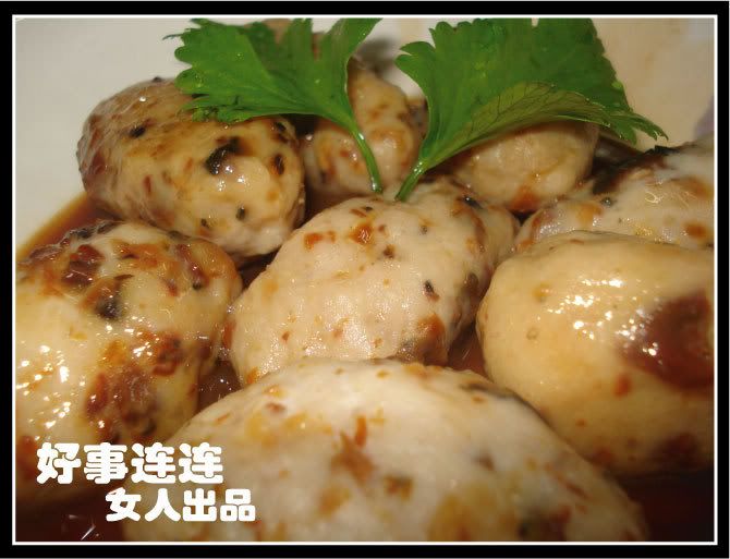 = 蚝干(剁碎)+ 绞鱼肉拌均,蒸5分钟