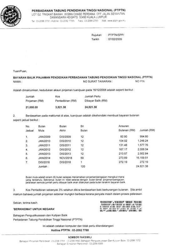 原帖由 有目标的大头 于 19-2-2009 07:27 AM 发表 这应该只是普通的通知信,让我们知道开始偿还PTPTN了,至于1%的,还是那句话----------慢慢等。
