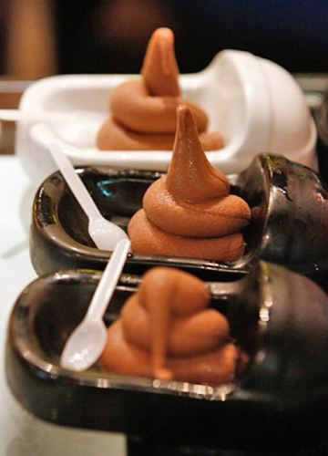 我快乐 发表于 14-8-2013 10:40 PM 可是很有趣,他的食物都是在马桶里,浴缸里的。。。 雪糕的颜色是chocolate色的。。。