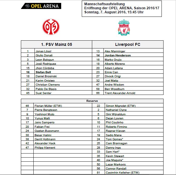 养伤中的卡里乌斯(Karius)也会前往欧宝竞技场(Opel Arena),这将是科法斯竞技场(Coface Arena)更名后的首秀,预计会有一个简单的告别仪式。 |