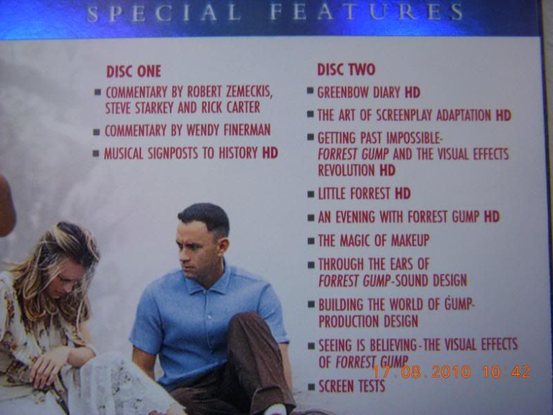 阿甘的故事我就不 用说了。重点是片子横跨了几个世纪啊,60,70,80年代的重点都标示出来了。两张disc,其实15块很值得了。花絮也有HD的。人性的光辉描述得很好,是个正面的片子。 |