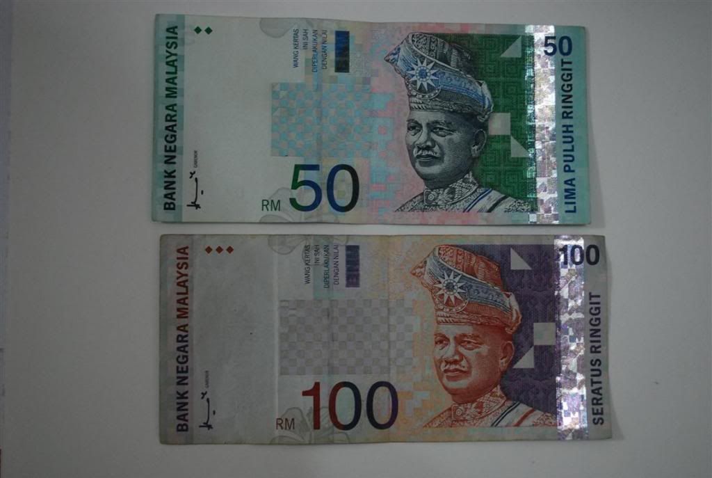 AHMAD DON 旁邊簽名的 RM50 和 RM100 |