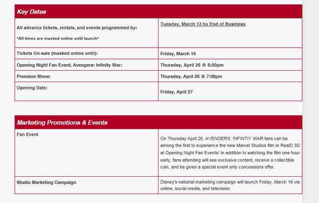 derek_c 发表于 13-3-2018 12:29 PM 一间美国戏院内部流传的memo,disney将会有很大的宣传活动&戏票预购在星期五(美国时间),预告2或许会在这个时候出来