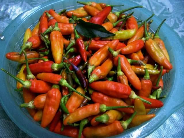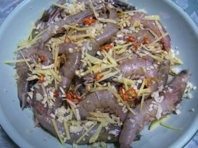 1.爆香蒜米和红葱, 加入绞碎辣椒和虾米炒一炒.