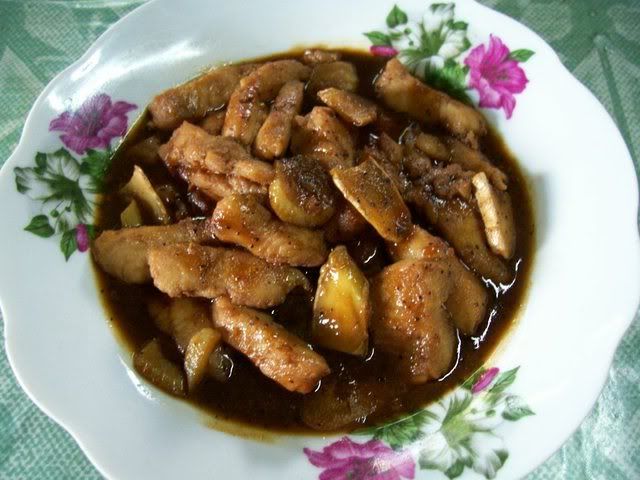 还是黑胡椒多里鱼, 不过这没炸过, 只是把鱼片加黑胡椒酱炒一炒.