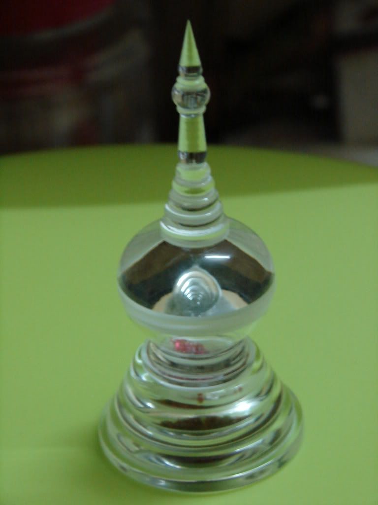 這兩張圖片是愛德華多年前所購,玻璃材質的貢珠。相較於緬甸、泰國等廟宇如芥子般大小的舍利子,「貢珠」(美其名為『琉璃舍利』)其實只是微小的玻璃球,除了有氣泡外,亦缺乏一種難以用言語形容的「活性」與「生命力」,相信有收藏舍利子的同好應該能體會這句話的意思。