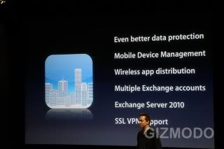 ▲ iPhone OS 4 对于企业商务功能的更新。