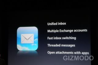 在 iPhone OS 4 中,对于企业商务用户也有不小更新,除了前面提到的支援多个 Exchange 帐号之外,它也支援电子邮件以及附件的加密,另外企业也能利用无线的方式将程式分派到 iPhone 中,不需利用 iTunes 同步。另外,iPhone OS 4 也支援 Exchange Server 2010,以及 SSL VPN。