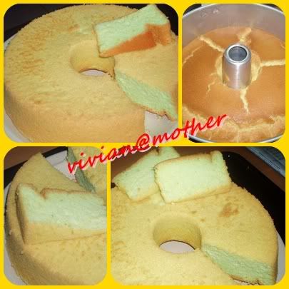 -倒扣至冷却才取出蛋糕。 其实就是戚风蛋糕拿来做生日蛋糕啦。。。搽上自己喜欢的cream就好了!