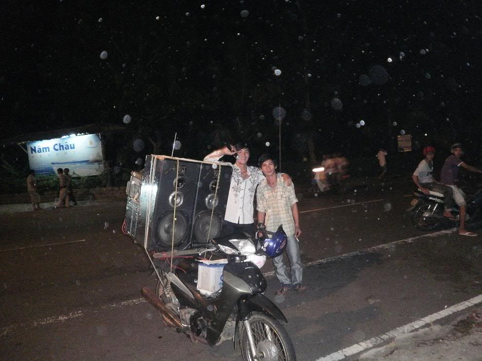 起初他边唱边比2还以为是20000dong 原来才2000 dong 卖完两人坐上一辆motor 又去下一站,