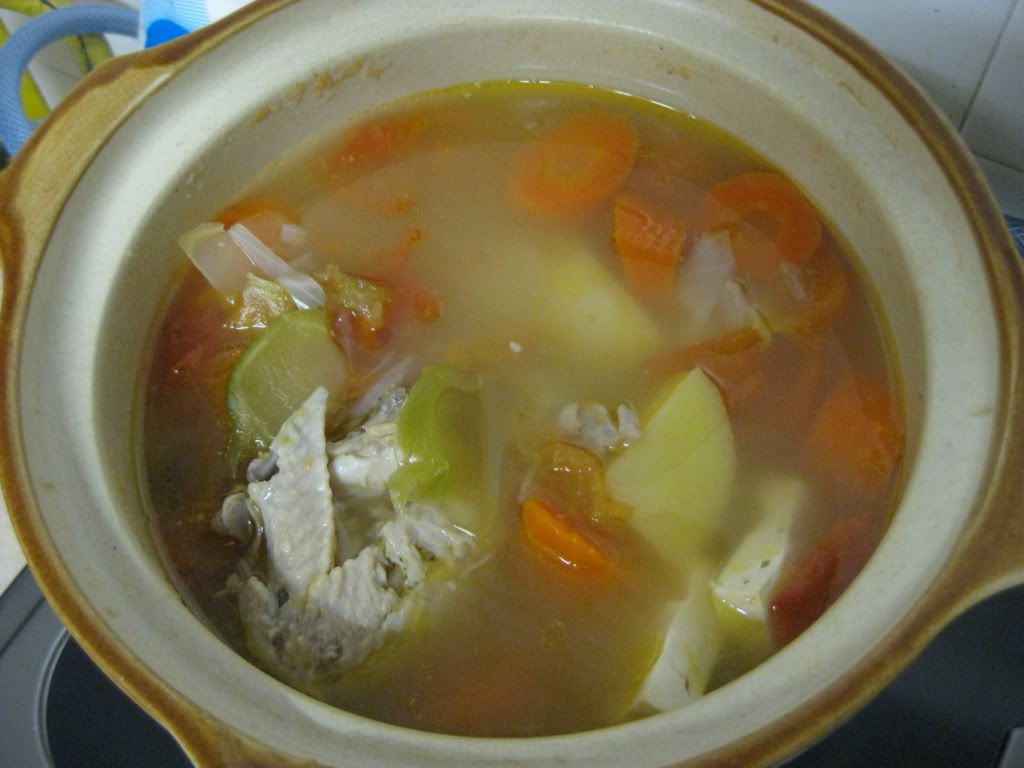 也没有特别的地方,材料有鸡、马铃薯、红萝卜及姜。