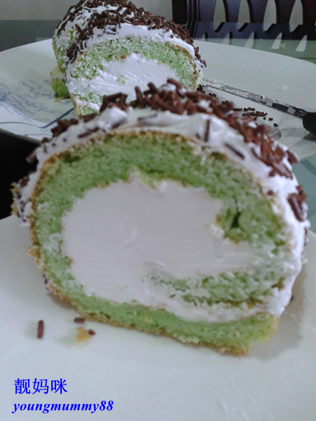 收在冰箱里的鲜奶油很久了~要用掉,不小心打多了分量,再冷冻的话应该也没有用到,还是全部卷下去~不要吃就挖掉!小孩可是爱得很呢。。。