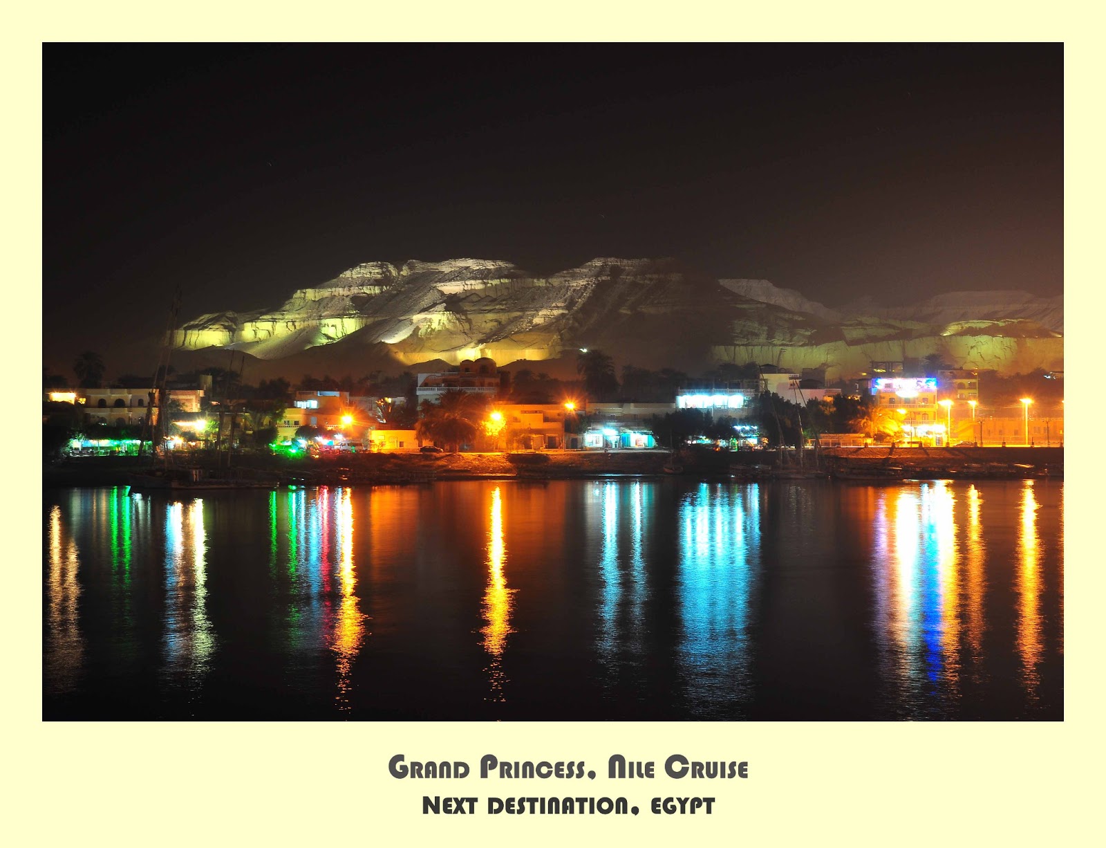巴士在大约4pm 便驶离了Abu Simbel,本以为3个小时后便能抵达目的地,没想到这次却用了超过4个小时才抵达我们的游轮,Grand Princess,一个5星级的游轮。