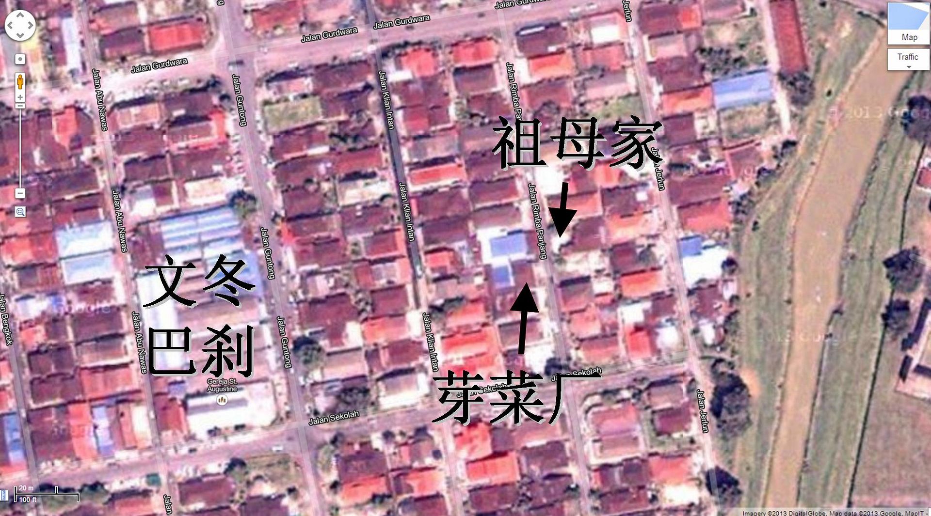 在google earth看祖母家,好像变了一片空地(文冬巴刹大街对面隔两 ...