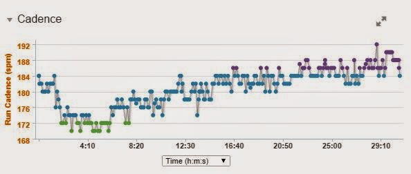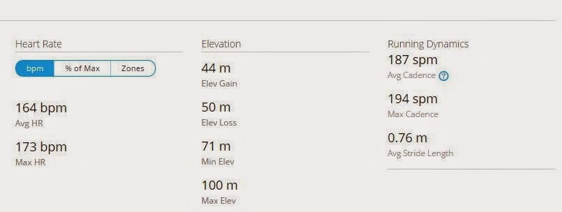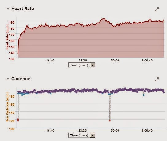 最后完成时间是1:15:14,平均配速5:57。步频平均189没有太多或少,心跳平均184,如果是183会更理想。表现满意程度90%!没有达成目标1,但是如果扣除650m,基本上是达成了目标2。
