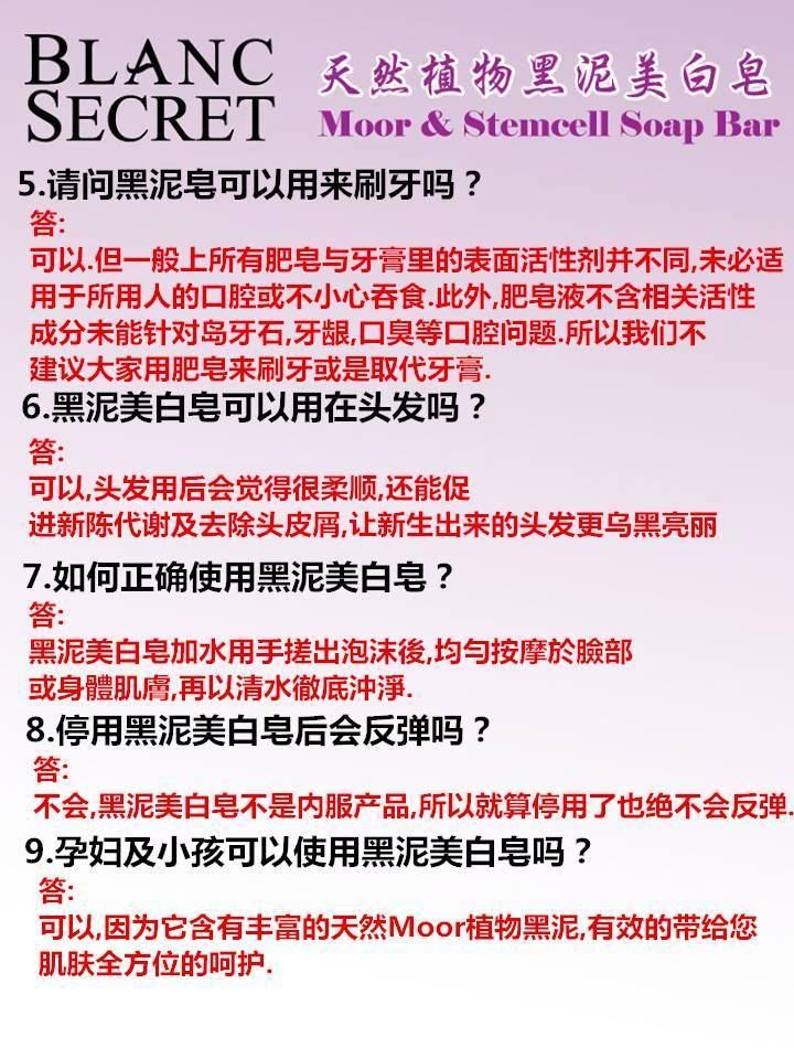 完美推荐Blanc Secret植物黑泥美白皂里含有丰富的天然Moor植物黑泥 能有效的带给你肌膚全方位美白透亮,包括脸部与身体,尤其对身体私密部位进行美白修护。