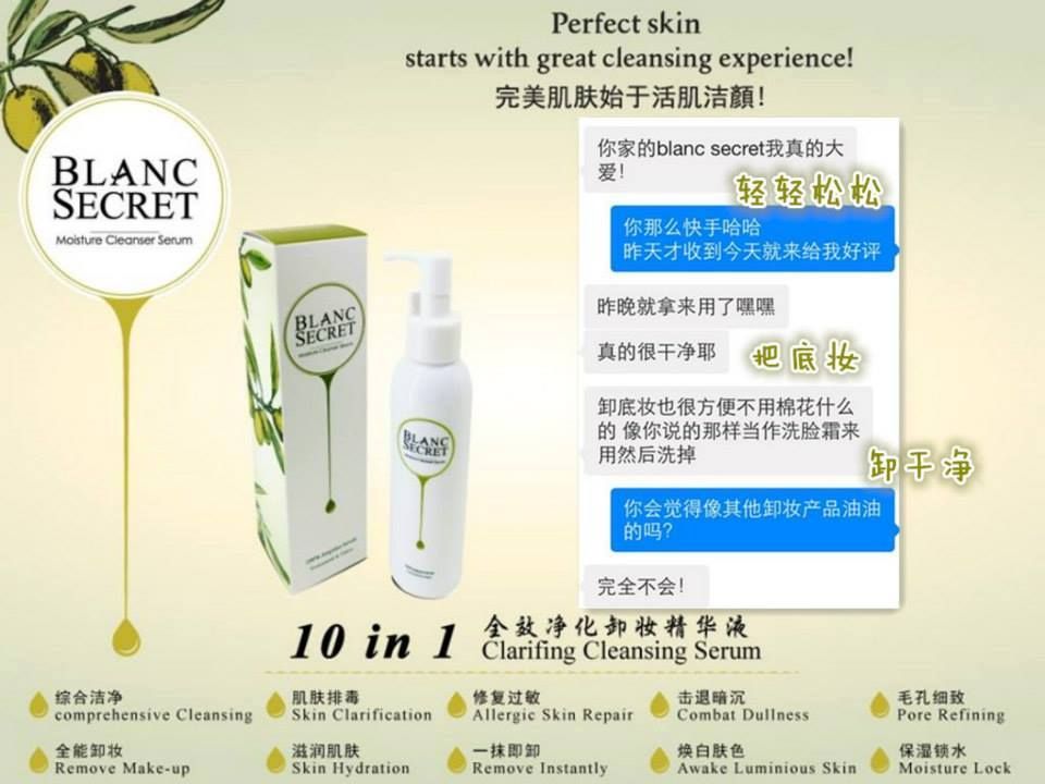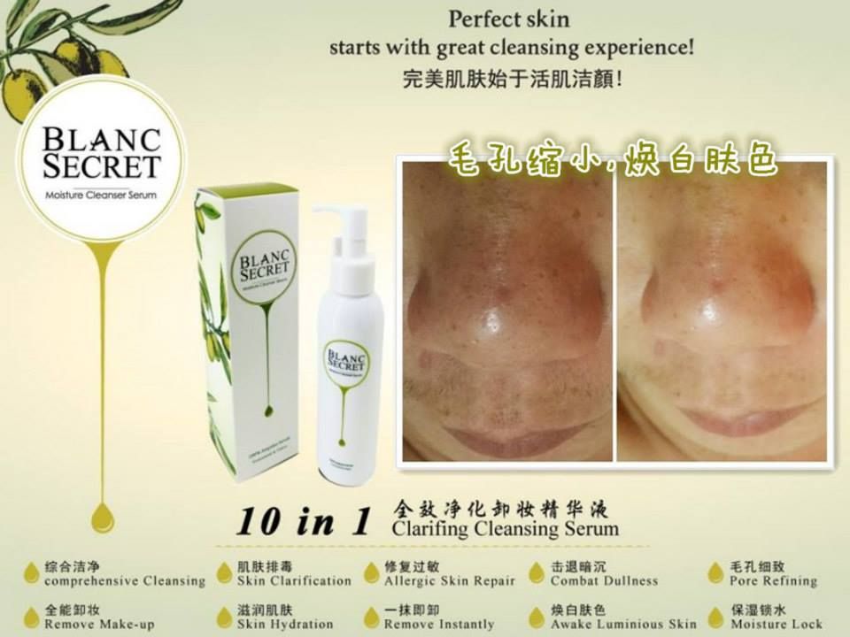 Blanc Secret Moisture Cleanser Serum全效 10 in 1淨化卸妝精华液不惜成本,以精純的天然植物精萃,结合了十种功效于一瓶!