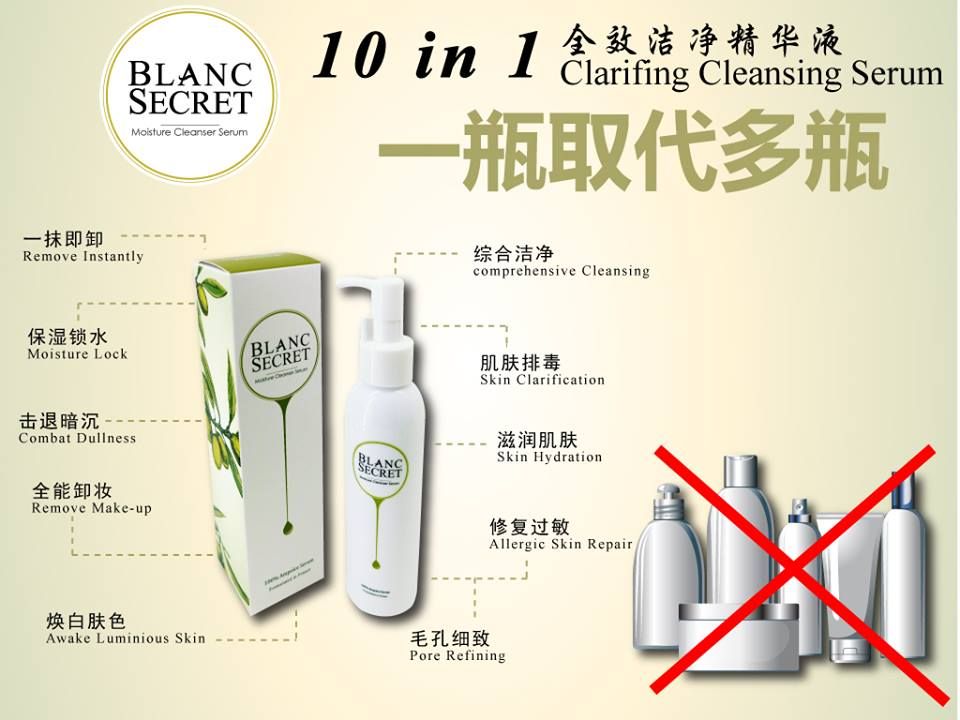 Blanc Secret全效洁净精华液~十效合一,一瓶就已经可以取代了洗脸霜、化妆水、卸妆水等等等等~只需一瓶,你就能拥有净、透、水、嫩的肌肤~你还在等什么