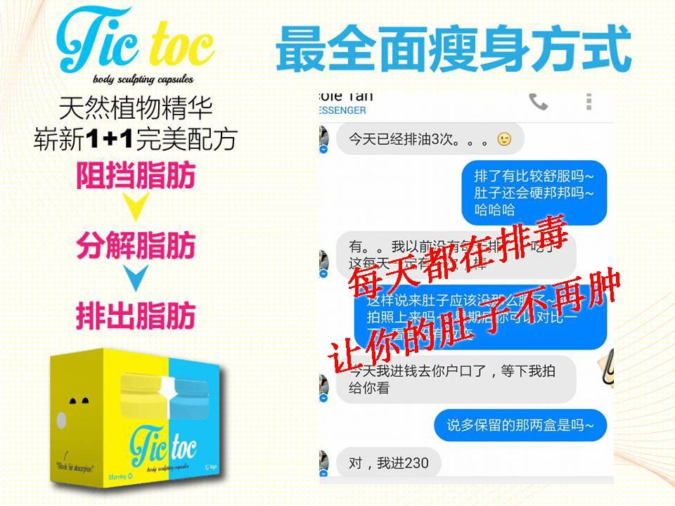 只需15天腰间赘肉不再是累赘,Tic Toc 要你瘦要你变,一盒RM120让你尽情享瘦♡