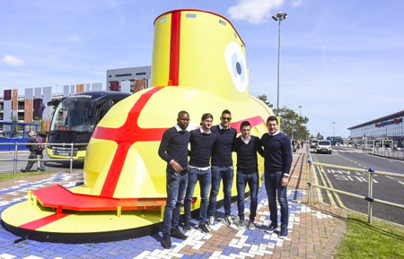 绰号“黄色潜水艇”的比利亚雷亚尔在抵达利物浦后受到了特别的欢迎。一个大型的黄色潜水艇雕像被安置在约翰-列侬机场外,黄潜球员们纷纷和这个“黄色潜水艇”合影留念。