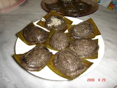 那天包汤圆用剩的黑芝麻。。。拿来做‘黑龟’哈哈。。。没有绿豆当馅料,所以里面包的也是黑黑的黑芝麻馅哈哈。。。