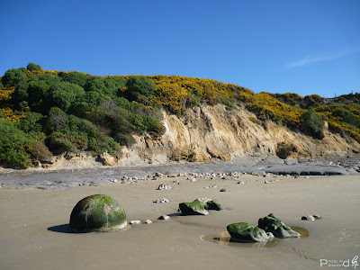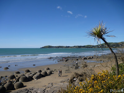 Moeraki Boulders的地理位置是位于Oamaru和Dunedin之间,如果经过时,时间也配合到的朋友不妨来到这里看看这些有大自然打磨而成的圆圆Moeraki Boulders咯!!!