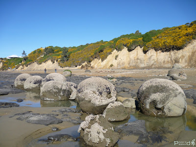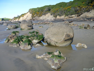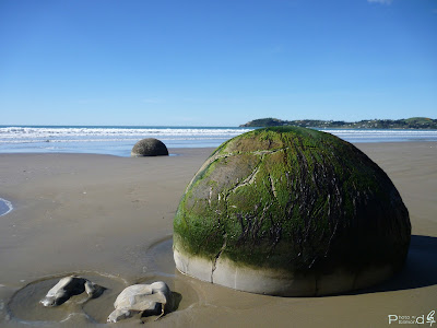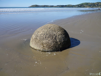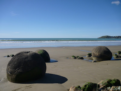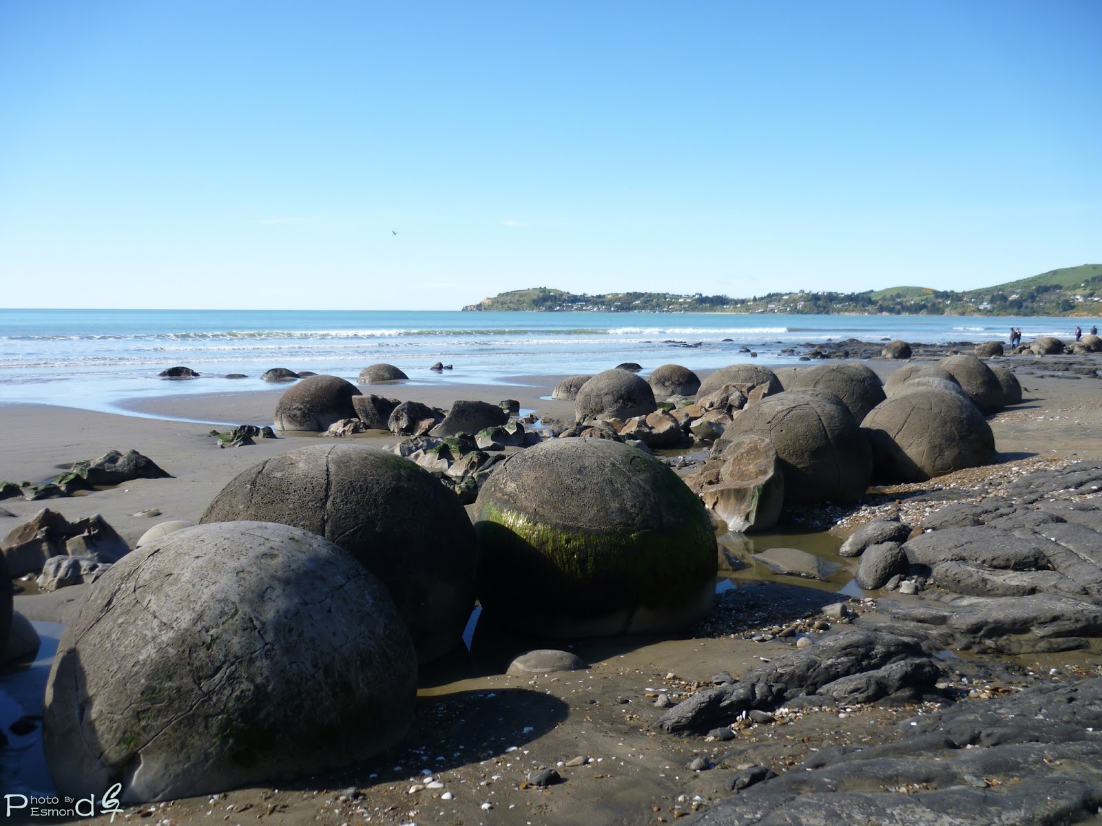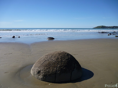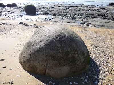 Moeraki Bolders其实就是一个个在海滩上的石头。当然,如果这些石头只是普普通通的石头也不可能会成为一个旅游景点。这些石头的形状有一点特别,它们都特别的圆。。。对,Moeraki Boulders就是一颗颗圆圆的石头。这些石头的形成都是大自然的杰作,完全不是人为的打磨而成的哦!!!