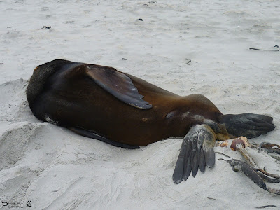 我们得到的结论应该是那只公海狮前去勾引不知是女儿还是妻子的母海狮,然后被旁边那只不知是爸爸还是老公的公海狮赶走。不知怎地,我觉得我和Ruth姐还真的蛮无聊的。。。