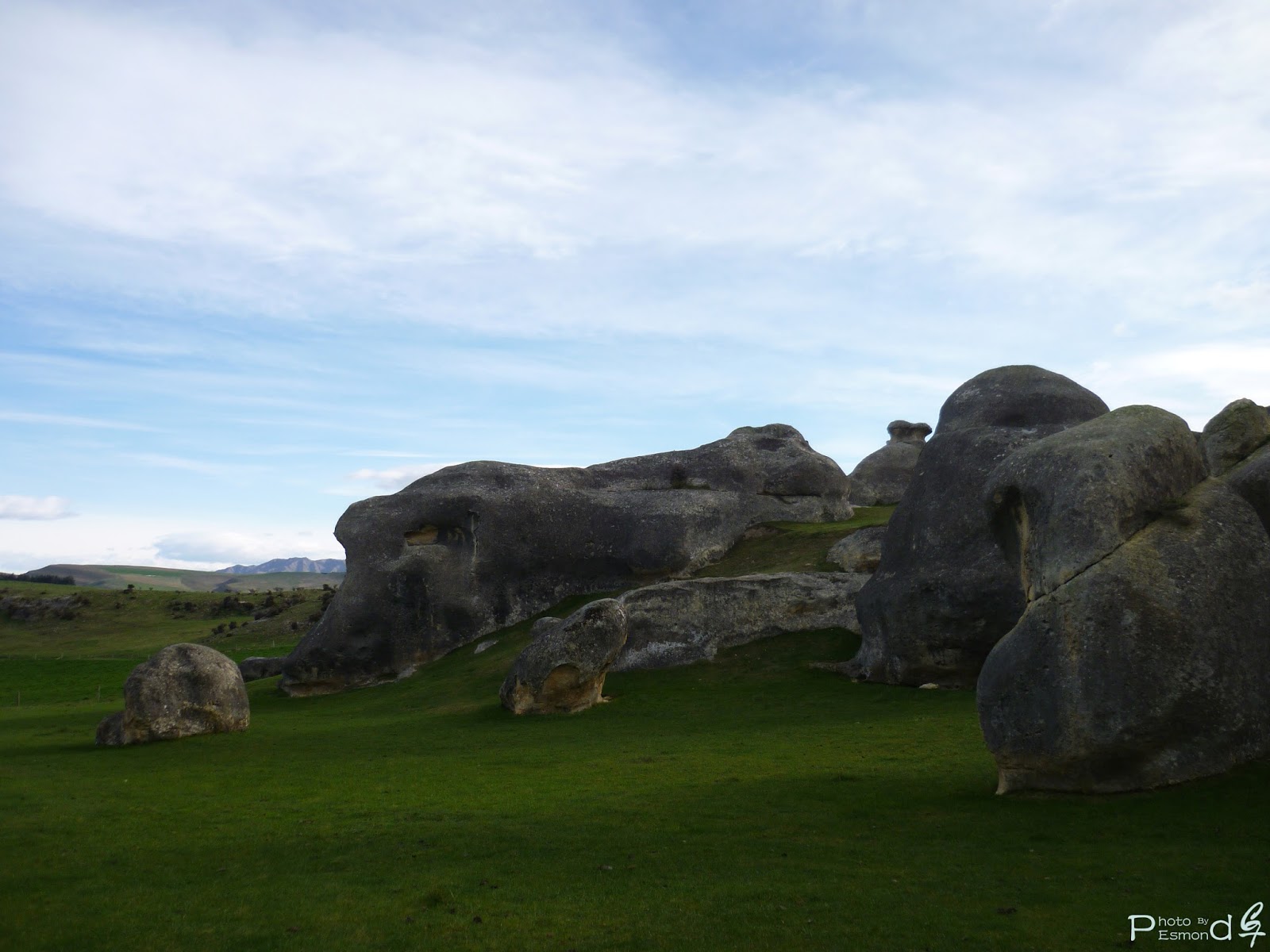 Elephant Rocks是一个距离Oamaru有接近40分钟的车程,位于一个叫Duntroon的小镇附近。其实事先并没有安排任何行程来到这里,只是在离开Oamaru前看到有一个叫Elephant Rocks的地方,而且从Oamaru沿着83号公路前往Mount Cook时可以稍微的绕进去看看,所以我就绕了进去看看。