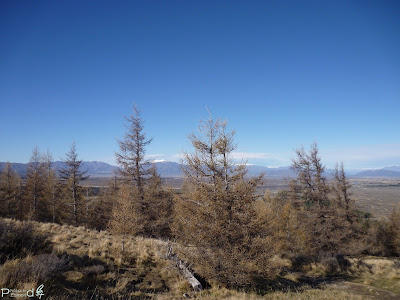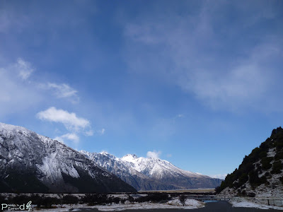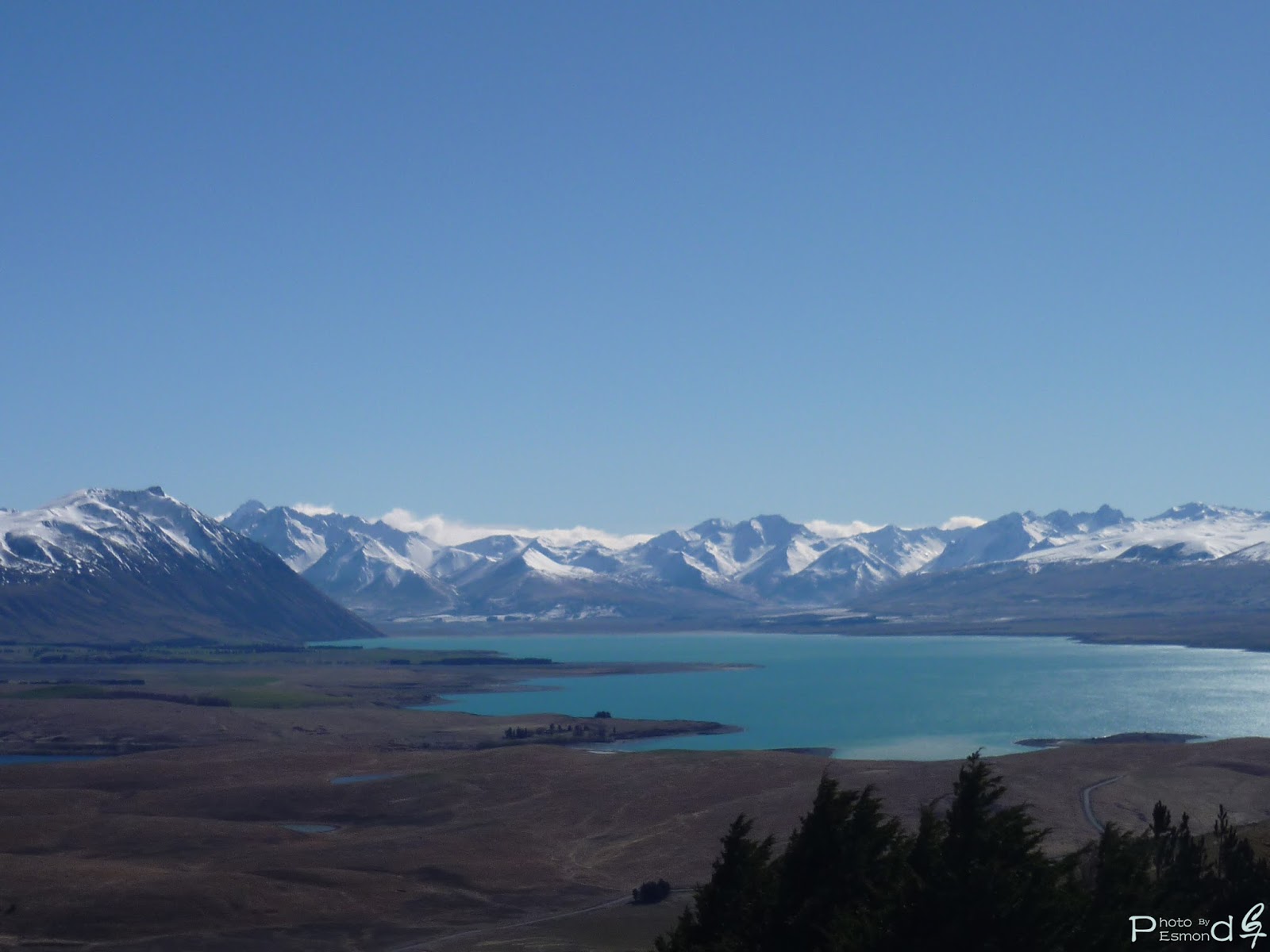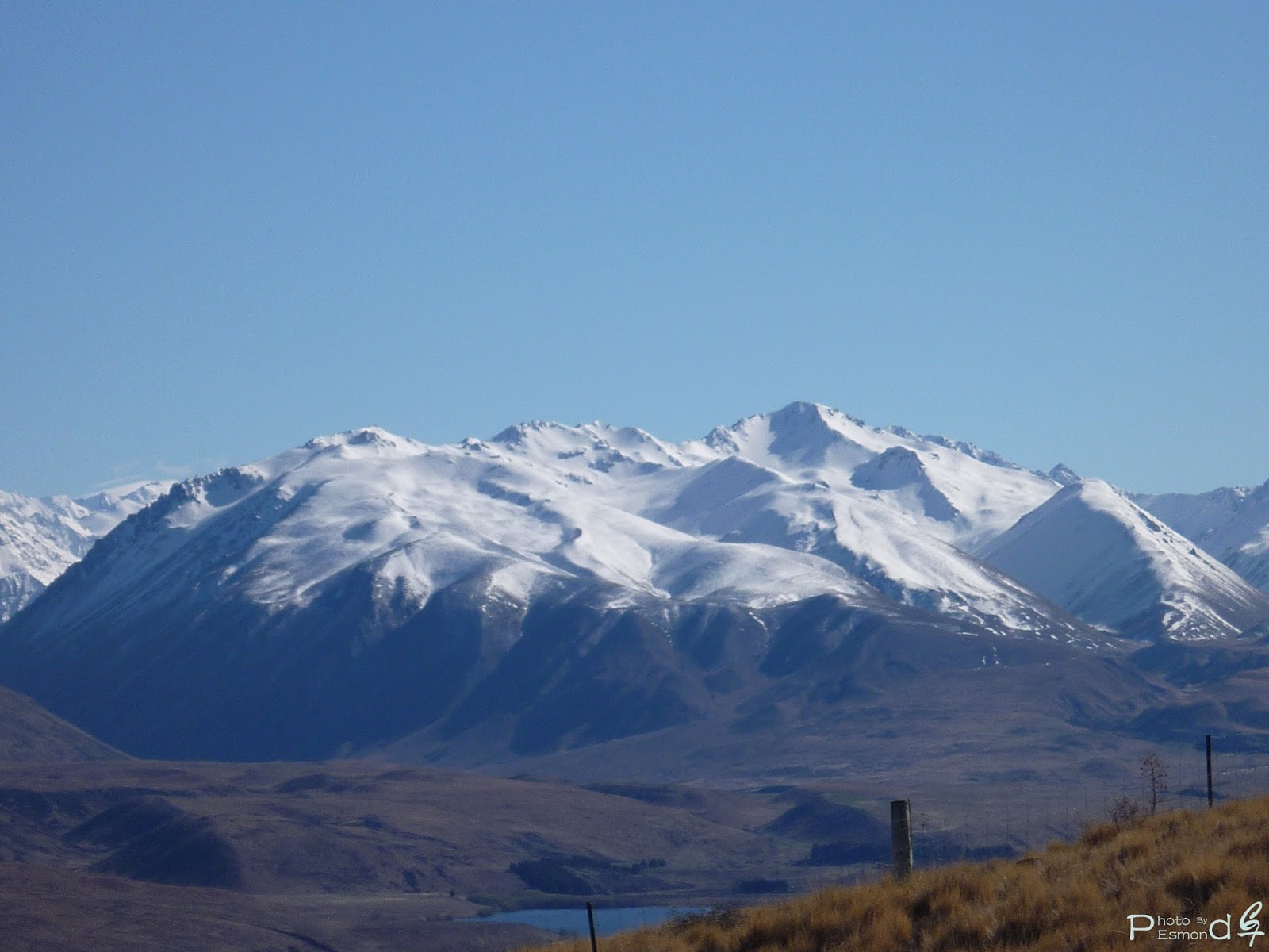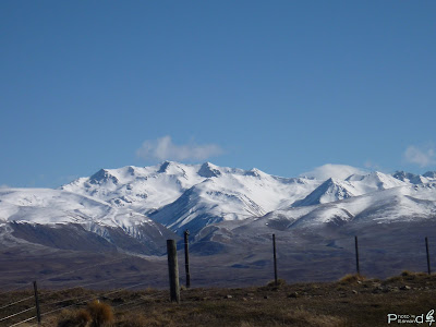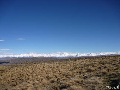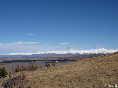 慢慢的走上山,走的越高,沿途的松树就越少,渐渐的,我就走出松树林了。这是在附近已经没有什么树木了,虽然少了没有叶子的松树,但却有着漂亮的雪山在远方哦!!!过了松树林后,一路走上山都可以望到远处那几座壮观的雪山。还是老话一句,纽西兰的风景,不管怎样看或拍,都真的很漂亮,尤其现在是冬季,南岛沿途的雪山景色真的是很漂亮。