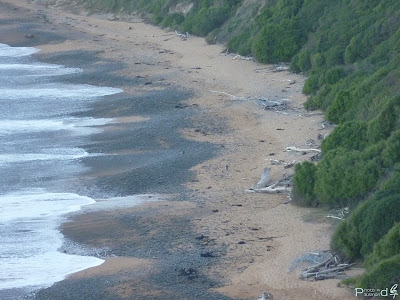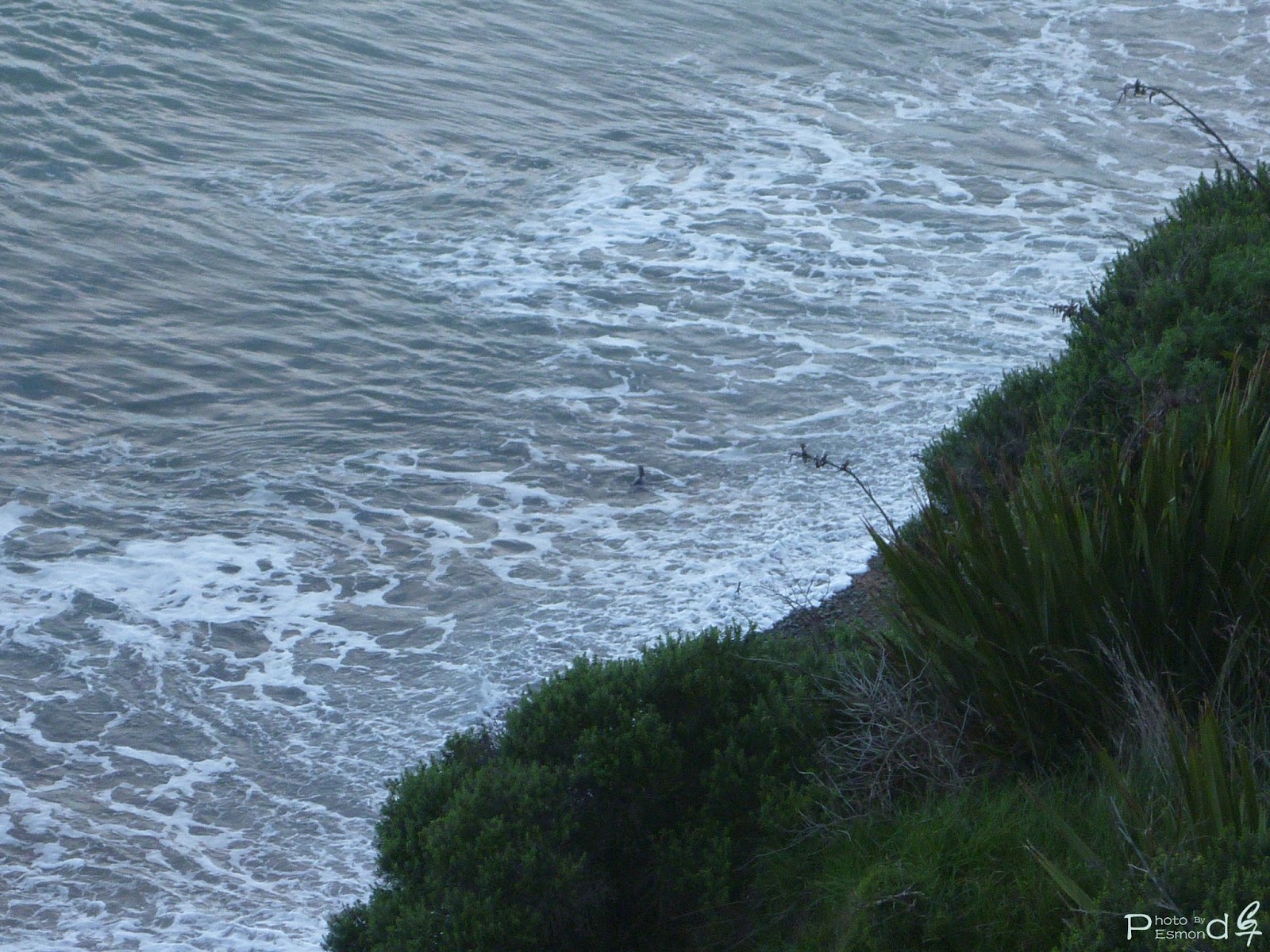 等了许久,当我们都要放弃时,终于看到远处的海滩有一个小黑点从海里回岸。由于这个隐藏观望台距离海滩实在是有一些远,我就只能看到一个小黑点走走跳跳的走上岸。相比我之前在另一处看企鹅的Roaring Bay,这里还真的看不是很清楚啊。。。Roaring Bay看到的企鹅还比较明显哦!!!