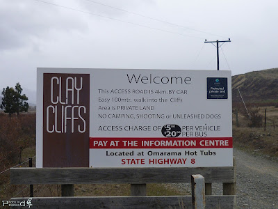 前往这个Clay Cliffs需要从主要公路转进一条小路,一条只是铺了石子的石子路,沿着石子路就会来到一个栏杆门口,上面有牌子指示这个地方属于私人地界,欲要前往的旅客都需要去到市镇内的i-Site缴付指定的入门费。。。我不知是不是纽西兰人对旅客们都那么有信心,他们真的觉得有旅客会特地去到5多公里远的市区缴付入门费???