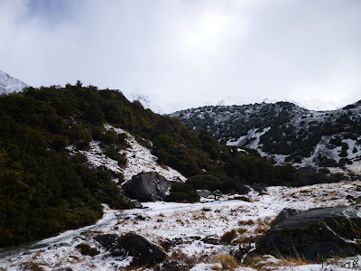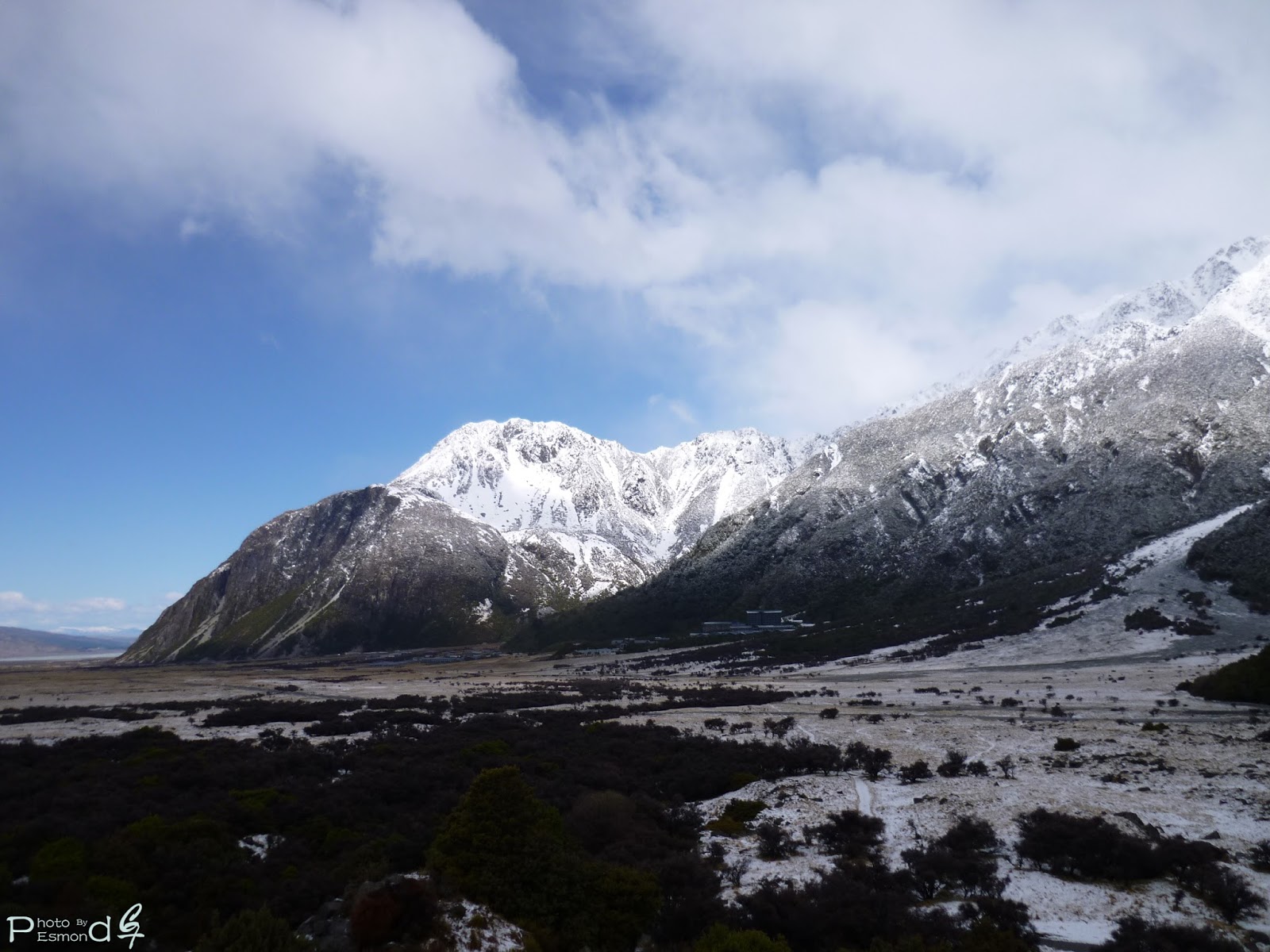 Mount Cook是一个热门的旅游地点,很多旅客都会来这里健行,我当然也是其中之一。但是我来到的时候却遇上Mount Cook很差的天气。原本打算只住一晚,第二天前去一个单日步道健行然后离开,但却因为Mount Cook第二天的天气更差,不但下雨,竟然还下起雪来了,入山的步道都因为天气太差而禁止旅客前往。。。我和Ruth姐讨论后,决定再留一晚,不管第三天的天气如何,都会离开Mount Cook了。