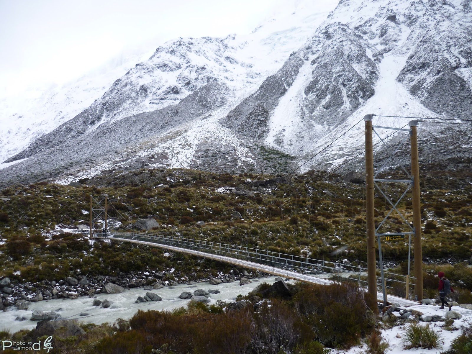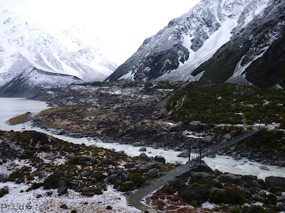 Hooker Valley Track不愧是Mount Cook最热门的健行步道,这个步道一路上的风景还真的蛮漂亮,尤其是下了雪后更是一绝,但步道的难度也因为下雨下雨后提升不少,对于部分旅客来说,Hooker Valley Track可不是一个可以简单完成的步道哦!大家可要留意哦!