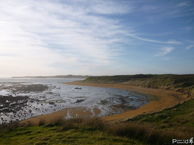 沿着步道走了不就,步道就会连接海滩,接下来的路就是沿着沙滩前进。不得不说,这个海滩还真的是蛮漂亮,只是冲着这里的风景都值得一来了,更何况这个海滩还可以看到野生动物哦。之前都说了,Sandfly Bay是可以看到海狮和企鹅的海滩,企鹅就不一定可以看到,但海狮却是一路前进都可以看到。