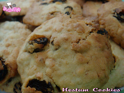 3) 拌入麦片, 面粉及葡萄干, 混合均匀.