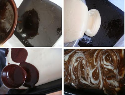 1。牛油隔水溶化,离火后与优格一起搅拌均匀。