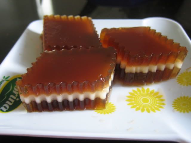深色的是黑糖加燕菜,白色的是燕菜,椰奶,盐和糖。