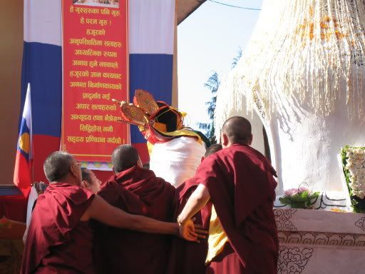 隨後貝諾法王立即派人親來藏地迎請法王如意寶。可是因法務繁忙、法體欠佳等緣故,沒有能夠即時前往。一九九零年,依靠三寶的加持,一切出國手續順利辦妥後,法王一行人如期抵達印度首都――新德里。
