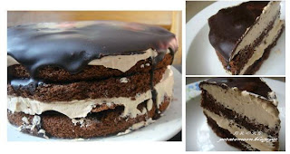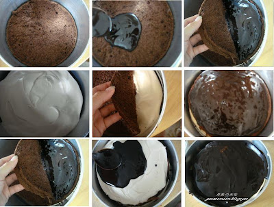 5。再放上一片蛋糕,然后涂上恰克力浆