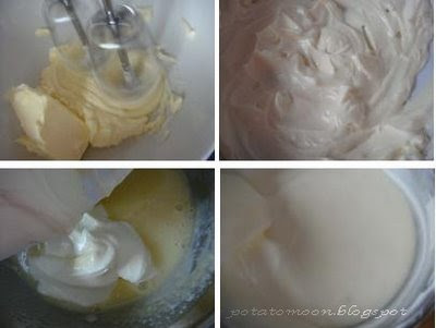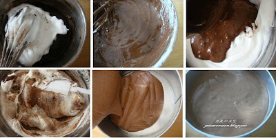 3。1/3的蛋白霜加入A料(可可湖)搅拌均匀