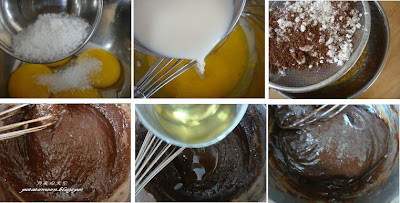 (A)蛋黃4個,幼糖26g, 粟米油24g,牛奶40g,低筋麵粉48g,可可粉24g