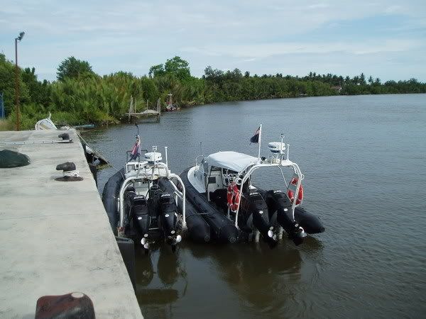 每一架快艇后方都装配了两台高马力的高速引擎。