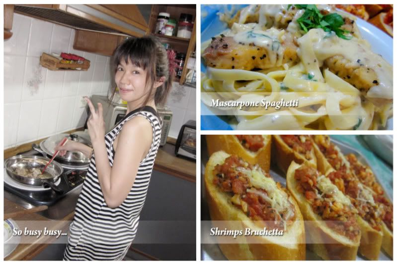 那天弄了 Mascarpone Spaghetti 和 Shrimps Bruschetta,