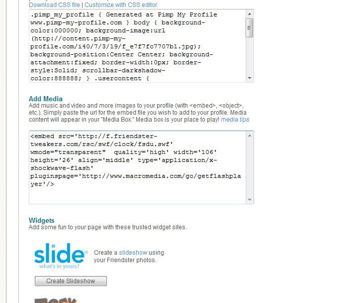 原帖由 Emerald12001 于 13-11-2007 09:00 AM 发表 我以前也是用这个Edit Profile的... 弄了N个小时才弄好... http://friendster-tweakers.com/tools/friendster-editor/