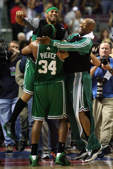 最后一节比赛开始后,加内特重新上场,凯尔特人队攻防两端的效应立马体现。加内特先是利用突破送给华莱士第五次犯规的同时,自己在罚球线上进帐两分。之后加内特又利用投篮再拿两分,帮助凯尔特人队将比分差距缩小至69-70。活塞的投篮未果之后,加内特保护下了防守篮板,皮尔斯两罚一中之后,凯尔人队扳平了比分。此后一段时间加内特和皮尔斯接管了场上的比赛,两人联手轰下16分之后,凯尔特人队以一波18-6将比分反超成了83-76。在雷-阿伦突破造犯规两罚全中之后,凯尔特人队已经将胜利稳稳放入口袋。