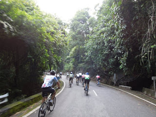 熟悉的上山路,难免对我们是占一定的优势。远方客人来,地形不熟悉,也不能太豁出去的骑车。可是,一开始就看到讨论哥紧随着阿heah哥上山,魔女紧随在后,我竟然落后了在末席。没关系,埋头紧追,一阵子就看到魔女在一旁歇息喘气。打气鼓励一下,她只是不熟悉那个地形,气息调整不来。8000号这次就不冲,陪伴魔女上山。
