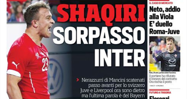 意大利的媒体纷纷报道,瑞士国脚沙奇里更希望加盟国际米兰而不是利物浦,但最后的转会将由拜仁慕尼黑做决定。