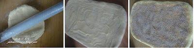 3。然后用叉子压紧边缘,用刀子在上面割几刀