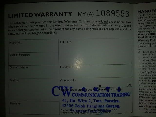 warranty card不需要寄的,只需要填你的资料,然后要送去修理的时候show给ncc的人看而已 |